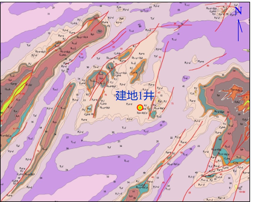 建地1井是中国地质调查局油气资源调查中心在武陵山地区花果坪复背斜龙潭坪背斜部署的一口地质调查井。2015年8月2日顺利通过地质设计和工程设计审查,中国地质调查局油气资源调查中心负责组织实施与管理,通过公开招标,湖南省煤田地质局第一勘探队负责具体施工。
