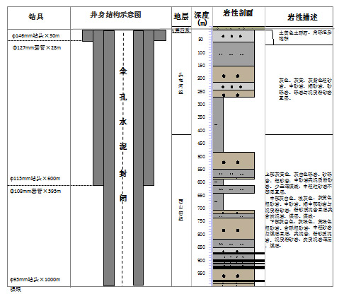 新呼地1井井身结构与预测地层及岩性柱状图