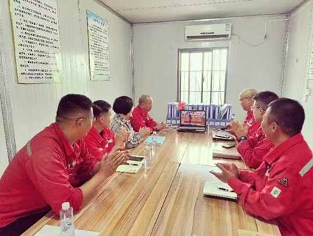 第六、第九党支部项目组在广西鹿寨“桂鹿地1井”现场集体收看
