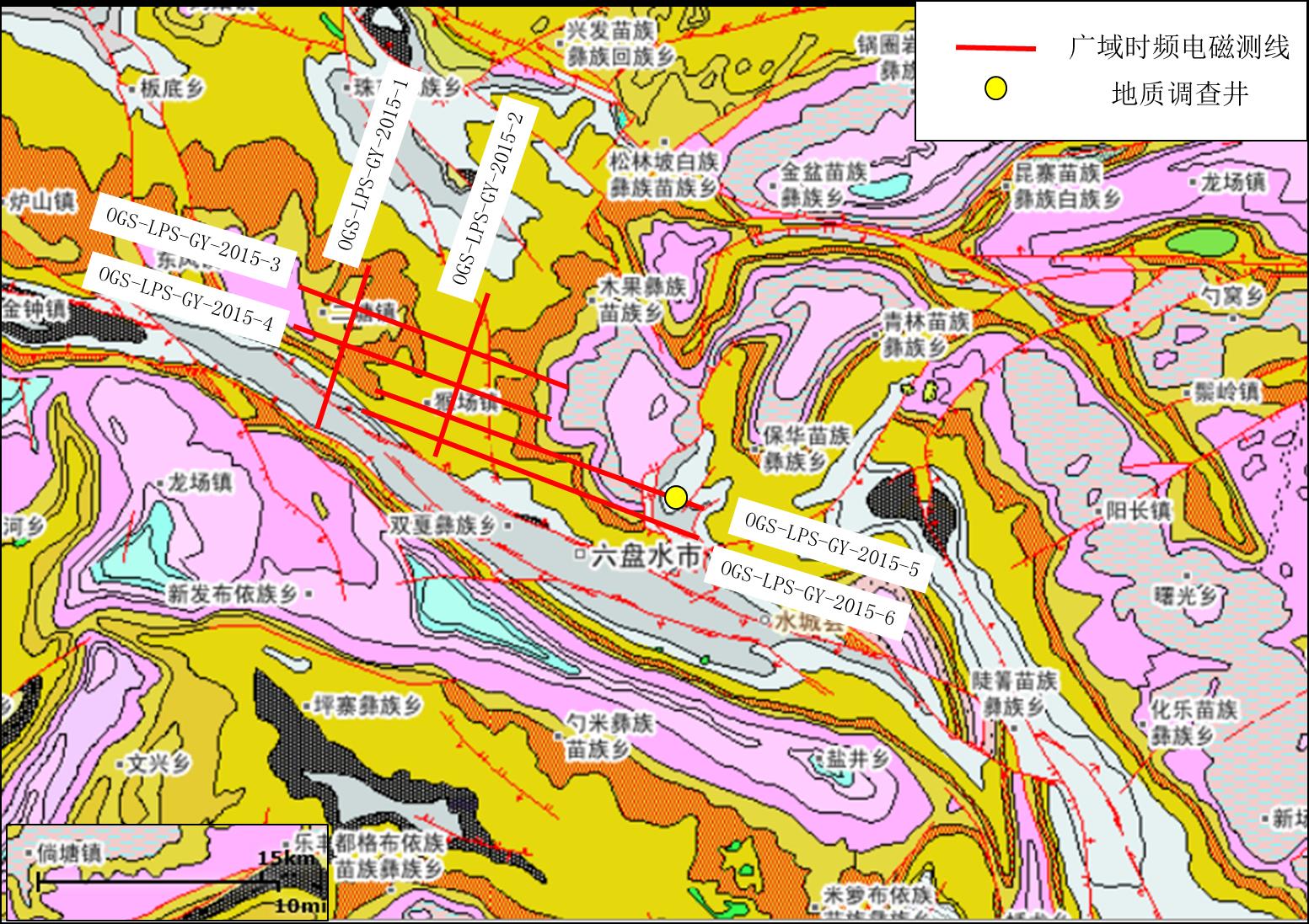 图1 贵州省六盘水市水城地区广域时频电磁测线部署图