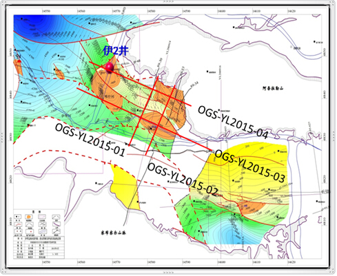 按照北疆项目组的统一安排部署,伊犁盆地2015年的勘探重点是低勘探程度的巩乃斯凹陷,为了落实巩乃斯凹陷西部的构造形态和地层层序,经过前期详细的综合论证,在巩乃斯凹陷西部部署时频电磁140km,二维地震120km。