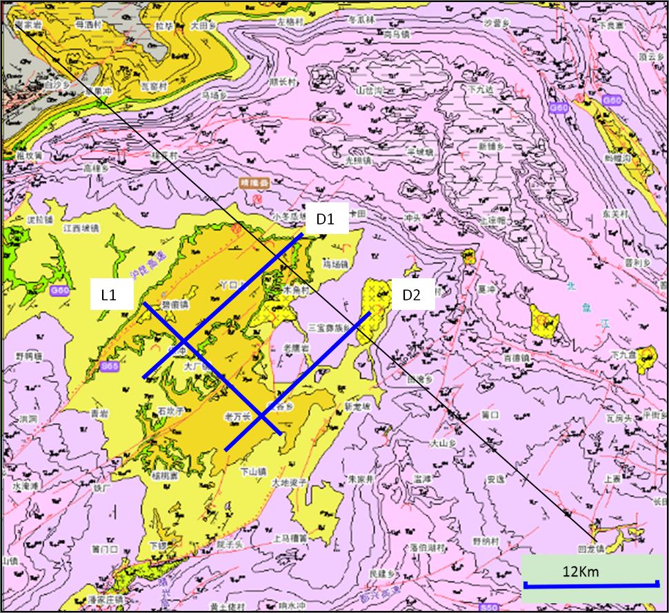 工区以黔西南地区碧痕营背斜为中心,涉及贵州晴隆、普安等县。本项目以下石炭统打屋坝组、上二叠统龙潭组黑色页岩为主要目标层,实施二维地震剖面数据采集50km,勘探目的层段的埋深500~6000m,开展地震数据处理及解释,并研究关键层位的识别与解释,查明地下层位分布特征和构造格局,为参数井井位奠定基础。