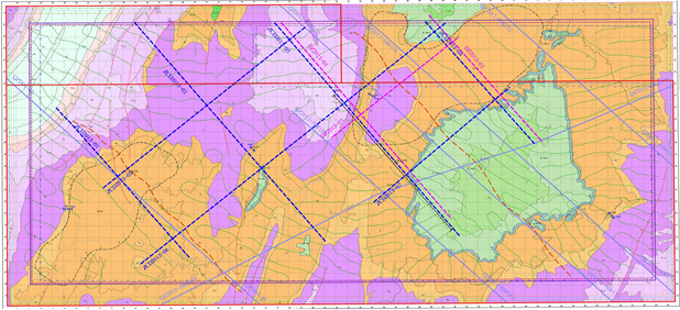 二维地震采集工作部署示意图(红线部分)