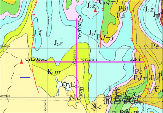 图1 2016楚雄地区1:5万页岩气基础地质调查试点项目二维测线部署图