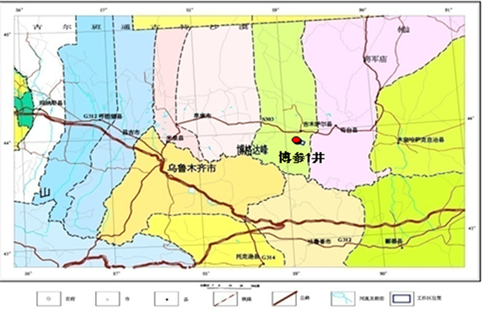 该井位于新疆昌吉回族自治州吉木萨尔县吴家湾下韭菜园子村,距离吉木萨尔县城约15千米,设计井深1000米,钻探目的层位为二叠系芦草沟组,钻探目的为查明博格达山前芦草沟组重油的发育特征及油源情况,兼探博格达山前二叠系芦草沟组油页岩的分布特点。2014年9月12日中午12点,博参1井正式开钻,该井的钻探对落实博格达山前带二叠系芦草沟组石油地质条件具有重要意义。