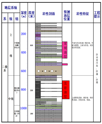 郎页1井地层及页岩油气预测柱状图