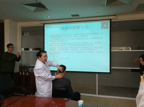 梅道莉师从北京龙纹国粹中医研究院院长齐宝槐,擅长风湿骨病理疗、中医康复理疗、中医推拿按摩及针灸,目前在战捷老先生团队,战捷先生曾是贺龙元帅私人保健医生。两个小时的讲座中,她为大家深入浅出地讲解了颈椎病、腰椎病的自我诊断及保健按摩方法,并对日常工作生活中如何预防提出了有针对性的建议,并与中心职工进行了现场诊断与康复演练。参加讲座的人员表示,此次健康知识专题讲座,既有深厚的理论基础,又有较强的针对性,令人受益匪浅。
