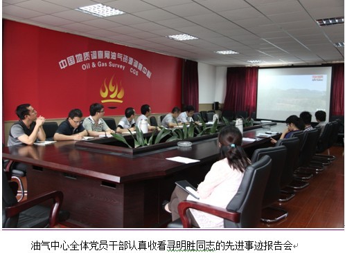 7月18日下午,油气调查中心全体党员干部认真收看了寻明胜同志的先进事迹报告会。