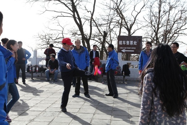 深秋的慕田峪气势恢宏,雄伟壮观。大家在山间小道和城墙之间拾阶而上,享受着苍茫的风景,呼吸着清新的空气,亲手抚摸着慕田峪长城的城墙残壁,无不感受到岁月的沧桑和先辈的智慧,倍添怀古之情。在攀登过程中,大家互帮互助,穿过了一个又一个充满历史韵味的烽火台。最后在山顶平台处因地制宜开展了踢毽比赛。本着勤俭节约和群众喜闻乐见的理念,本次踢毽比赛在传统踢毽活动的基础上进行了创新,由自娱自乐改为集体对抗,体现了团结协作的精神,兼具娱乐性和观赏性。