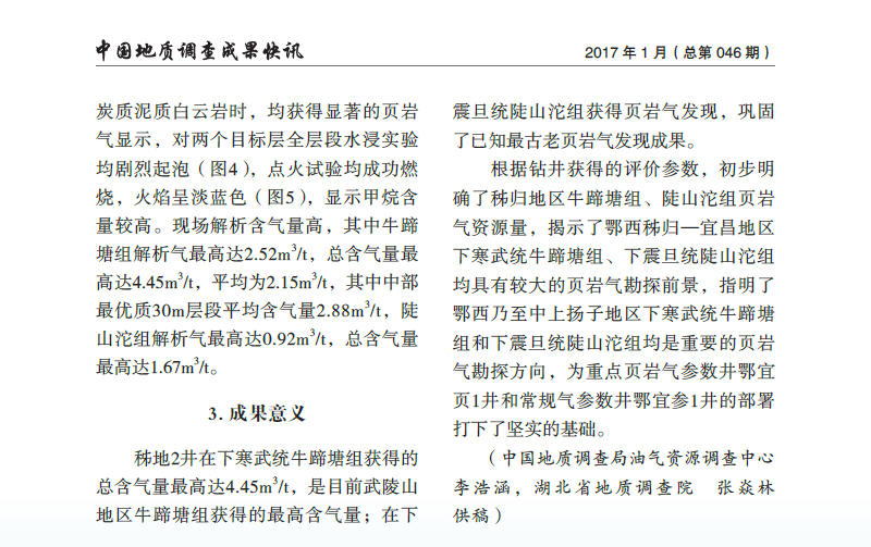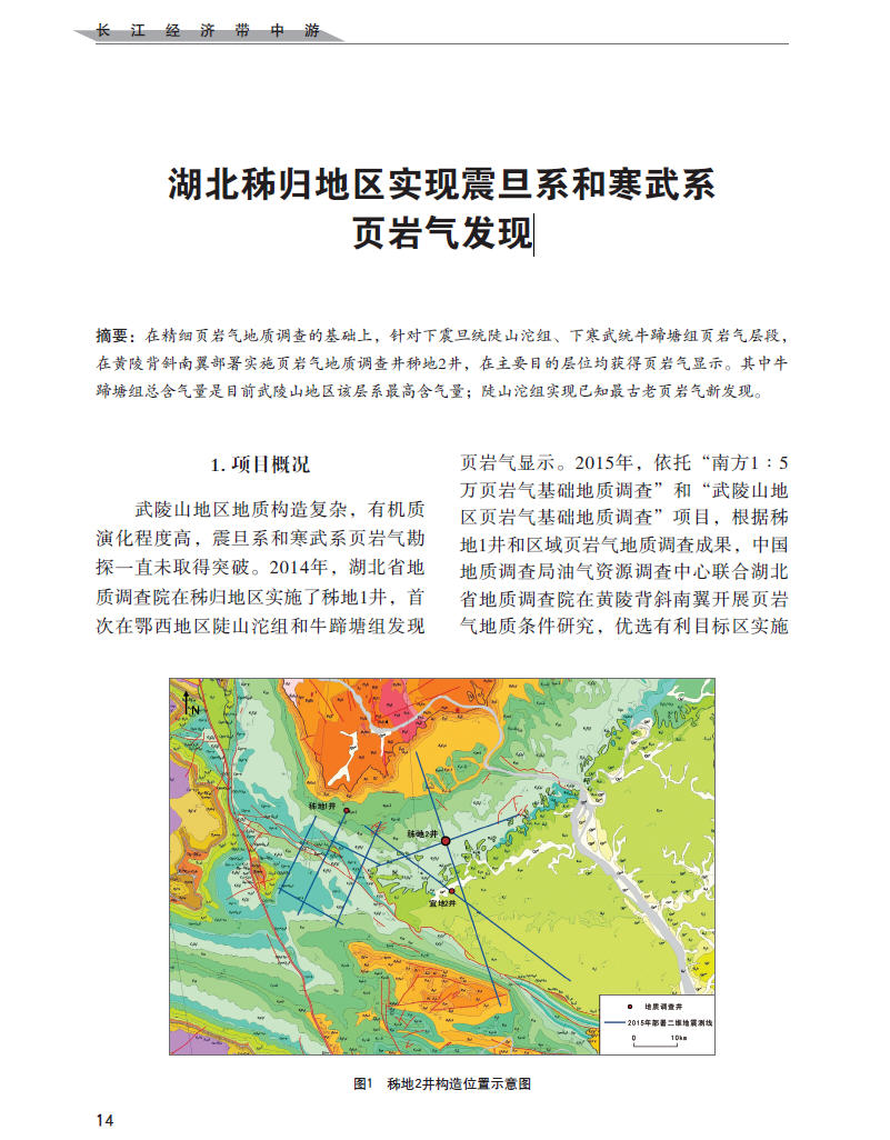 湖北秭归地区实现震旦系和寒武系页岩气发现