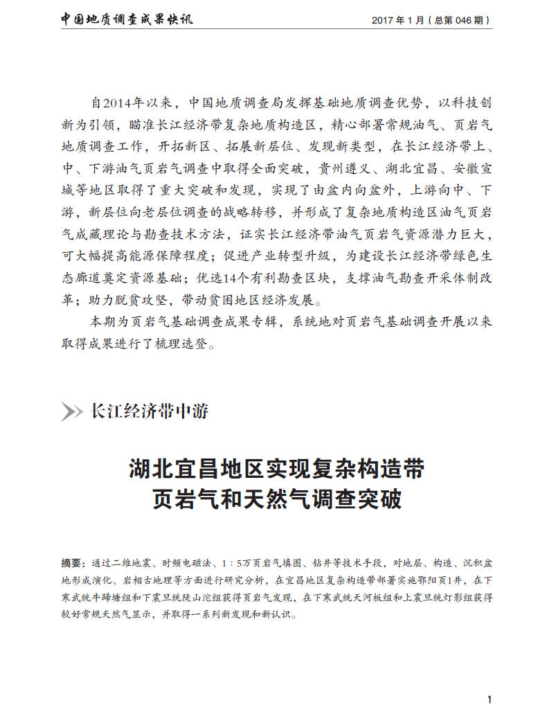 湖北宜昌地区实现复杂构造带页岩气和天然气调查突破