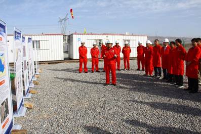新疆战略选区负责人高永进教授级高工首先以展板的形式向与会专家介绍了新苏参1井的工程概况、井位部署依据及思路、井场标准化建设以及新苏参1井野外临时党支部的党建工作。随后,与会专家进行了标准化建设和井场设备检查,听取了钻井和测录井现场技术人员的汇报,开展了讨论质疑,认为新苏参1井钻探工程和测录井工程均按照工程设计配备了施工需要的钻井和测录井装备及配套设施,并完成了安装调试工作;钻井和测录井技术人员组织安全生活保障人员已就位,并全部持证上岗;井场成立指挥部和项目部,并制定了专门的规章制度,安全、环保、HSE等保障措施齐全得当。与会专家一致认为钻井和测录井工程均达到了开钻要求,同意开钻。