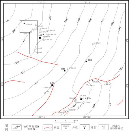 根据2016-2018年度对松辽盆地西斜坡油砂资源的地质认识及调查成果,在大岗和小太平山优选出白垩系油砂勘查有利区2处(图5)。
