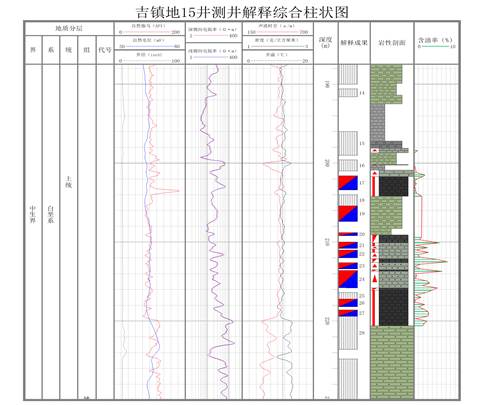 图2 吉镇地15井185-230m井段测井解释成果图(1:200)