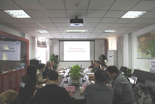 会前Mark Shuster一行实地参观了数据处理中心和实验室,并给予了高度评价。交流会上,陈仁义主任首先对Mark Shuster一行的到来表示了热烈的欢迎;翟刚毅副主任对油气调查中心的定位、业务领域和阶段成果进行了概要介绍。Mark Shuster副局长做了题为“The Development Progress of Unconventional Oil & Gas in the USA”精彩的学术报告。会后,双方就中美两国二叠系等层系的页岩油气勘查开发等方面联合研究进行了深入探讨与广泛交流。