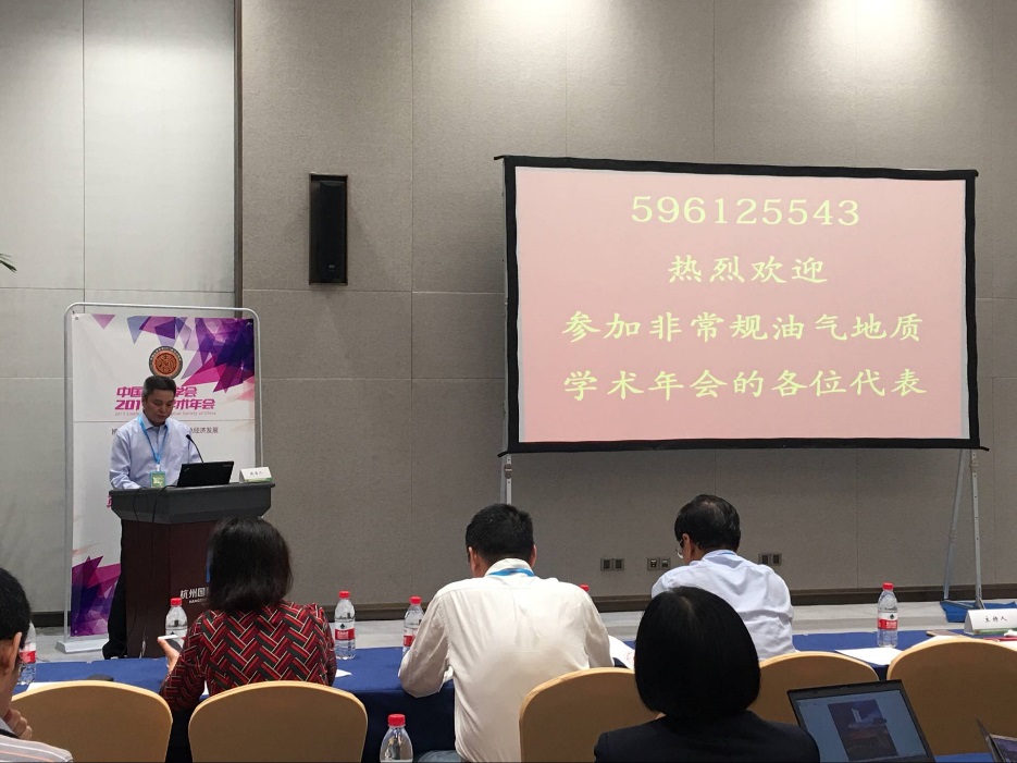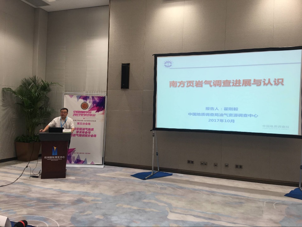 2017年10月9日-12日,中国地质学会在杭州举办主题为“推动地质科技创新 助力绿色经济发展”的2017年学术年会,中国地质调查局油气资源调查中心(以下简称“油气调查中心”)作为中国地质学会非常规油气地质专业委员会(以下简称“专委会”)挂靠单位,承办“中国地质学会2017年学术年会第05分会场——非常规油气地质学术年会与页岩气培训班分会场”(以下简称“分会场”),主要议题:交流非常规油气勘探及评价领域的新成果、新观点、新思路、新方法和新领域,促进我国非常规油气领域理论、技术、应用研究的全面深入,进而推动非常规油气勘探、开发的不断突破。油气调查中心主任陈仁义主持会议并致辞,油气调查中心副主任、专委会秘书长翟刚毅做关于 “南方页岩气调查进展与认识”的主题报告。