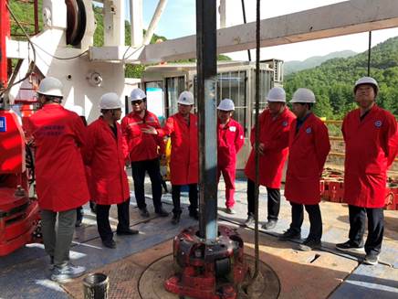 5月31日下午,调研组一行首先来到陕西煤田地质油气钻采有限公司,听取了陕西煤田地质油气钻采有限公司陈先虎经理汇报陕南页1井中标后至今取得的工作进展、遇到的问题以及下一步工作计划。何远信指出陕南页1井是部署在陕西南郑地区页岩气的参数井,主要目的层是下寒武统牛蹄塘组、震旦系灯影组和奥陶系西凉寺组。目前基本工作已经就绪,但施工进展滞后,要求施工单位把安全环保工作放在首位、做好技术方案、准备好物质材料、加强现场施工管理,确保按质按量按期完成施工任务。