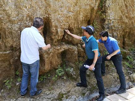 6月1日下午,调研组一行来到陕南页1井现场,了解现场概况及工程进展,听取施工情况汇报,对现场资料、钻井设备、泥浆性能、人员配置、安全环保等方面进行全面检查,对存在的不足及隐患提出了整改意见;并前往南郑县西河乡进行寒武系-震旦系野外剖面观察,进一步了解了目的层系页岩特征和地层序列。