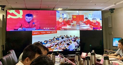 6月24日下午,自然资源部中国地质调查局油气资源调查中心(以下简称“油气调查中心”)召开“不忘初心、牢记使命”主题教育部署会,深入贯彻落实中央主题教育工作会议和局党组动员大会精神,全面推进油气调查中心主题教育。中心党委书记赵奇做部署讲话,局第一指导组组长余浩科出席会议并讲话。正在吉林吉页油1HF井现场指导工作的中心主任张君峰,通过生产调度指挥系统视频联线参加会议并作总结讲话。