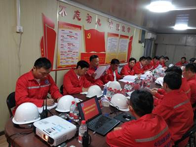 新疆战略选区负责人高永进教授级高工首先以展板的形式向与会专家介绍了新苏参1井的工程概况、井位部署依据及思路、井场标准化建设以及新苏参1井野外临时党支部的党建工作。随后,与会专家进行了标准化建设和井场设备检查,听取了钻井和测录井现场技术人员的汇报,开展了讨论质疑,认为新苏参1井钻探工程和测录井工程均按照工程设计配备了施工需要的钻井和测录井装备及配套设施,并完成了安装调试工作;钻井和测录井技术人员组织安全生活保障人员已就位,并全部持证上岗;井场成立指挥部和项目部,并制定了专门的规章制度,安全、环保、HSE等保障措施齐全得当。与会专家一致认为钻井和测录井工程均达到了开钻要求,同意开钻。