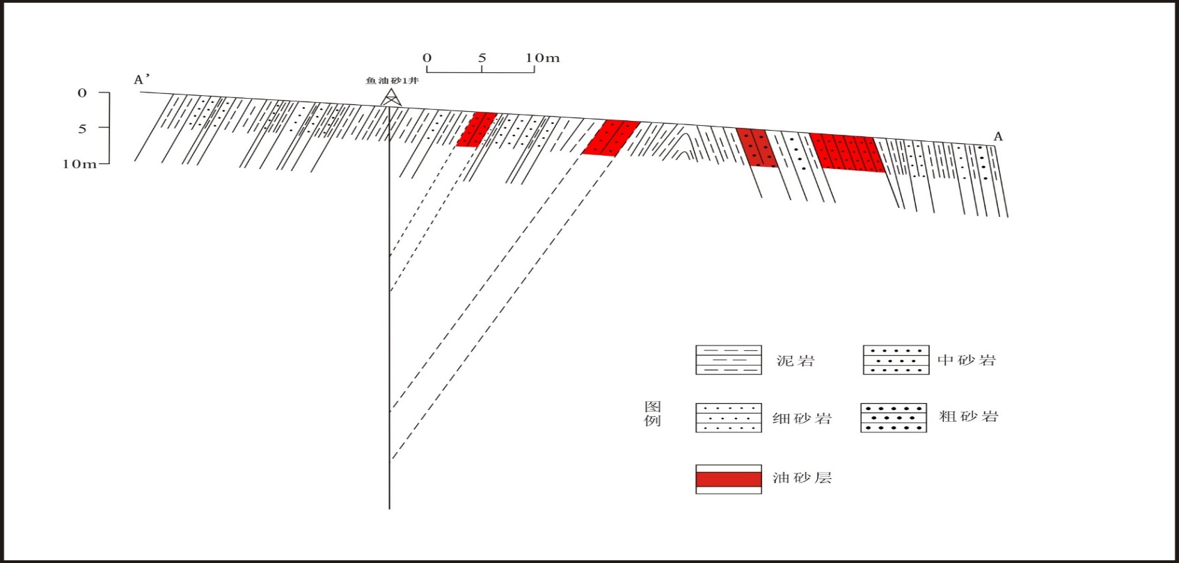 鱼油砂1井钻遇油砂层剖面简图