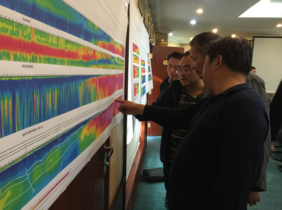 验收组在认真听取施工方汇报的基础上,仔细检查了野外采集施工的各项原始资料,包括物理点测量成果簿、测量技术报告、现场初步处理成果以及各项质量检查报告。从已获得的资料和初步处理结果看,施工符合相关技术规范,仪器工作状态正常、稳定,采集的数据真实、可靠,各项指标符合设计要求;资料整理规范、齐全,达到设计及合同所规定的技术指标和要求,能够满足地质解释要求。专家组一致同意以上三项工程通过野外验收。