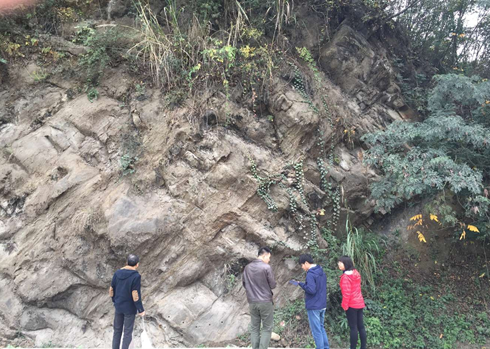 中上扬子地区油砂资源远景调查为中国地质调查局油气资源调查中心承担的“油页岩油砂资源基础地质调查”项目中的重要工作任务,该任务由中国地质调查局成都地质调查中心实施。四川盆地西北部是油砂的主要富集地区,为了解该区油砂资源分布情况,科学部署2016年油砂地质调查工作,2015年11月16-18日油砂项目组联合成都中心一行5人考察了川西北江油市二郎庙-剑阁地区油砂野外剖面。