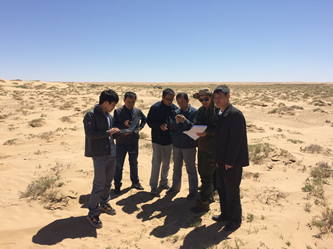 2016年5月9日至18日,河西走廊项目组联合玉门油田、甘肃省地质调查院、西安石油大学等协作单位,及中标施工单位,组成河西走廊野外联合踏勘工作组,赴工区落实工作部署。项目组首先组织了与玉门油田研究院的交流讨论,根据地震、非震和野外露头等资料深化了对工区的地质认识。然后野外联合踏勘工作组先后赴武威、雅布赖、民乐等三个盆地,跨宁夏、内蒙、甘肃等三省区,行程2500km,完成了钻井和电法工程踏勘,随钻研究和野外地质调查等三大工作任务。
