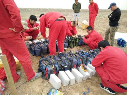 该工程由中国地质调查局油气资源调查中心负责组织实施和现场管理,江苏华东八一四地球物理勘查有限公司承担现场施工。为了保质保量高效地完成任务,项目组组织相关单位进行了野外实地调查和踏勘,制定了强有力的工作方案和措施,要求责任落实到位,严格按规章制度办事,科学施工的同时要求创新工作思路,确保野外采集数据的质量,以保障圆满完成野外采集工作。