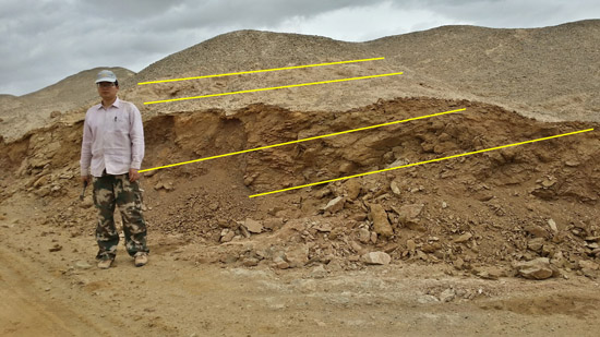 冷湖四号背斜东翼油砂野外产出照片(镜头方向NE48°)