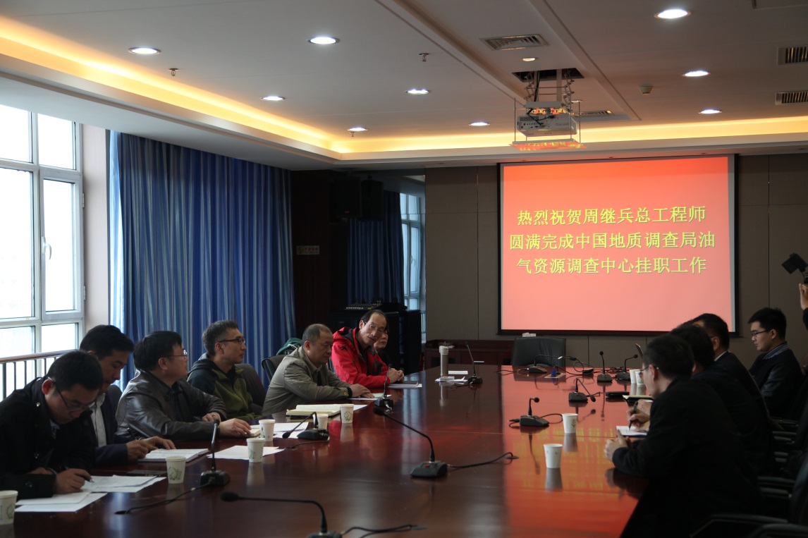 2018年4月8日,中国地质调查局油气资源调查中心(以下简称“中心”)油气室组织召开大会,欢送周继兵同志返回新疆工作并表祝福之意。周继兵2017年6月来我中心挂职,任油气室副主任。挂职期间,他团结同志、服从安排,积极参与到油气室的各项工作中来,得到领导和同志们的一致肯定。油气室主任周新桂表示,周继兵同志是一位严谨认真、崇尚实干,解决实际问题的能力强的好同事;是一位为人正派、情操高尚,讲党性、顾大局的好领导;是一位抓协调、促落实,综合素质高,各方面表现十分突出的优秀干部,充分展示了地矿单位良好的精神风貌和工作作风。