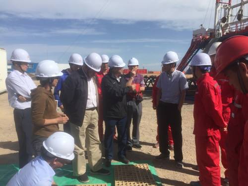 2018年9月13日,中国华电清洁能源有限公司总地质师雷怀玉一行三人赴新疆阿克苏新苏地1井开展业务调研,自然资源部中国地质调查局油气资源调查中心(以下简称“中心”)副总工程师、油气室分管领导周新桂,中心高级专家陈永武以及油气室相关人员参加了此次交流。