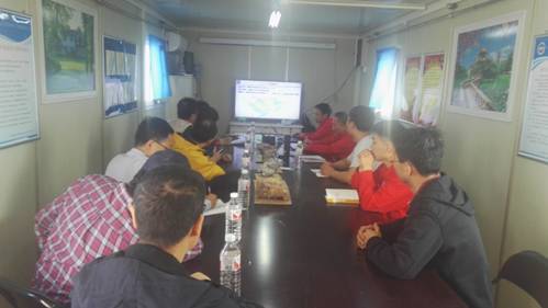 相关领导和专家参观了钻井现场并仔细观察了录取的岩屑,中心现场负责张远银博士从工程介绍、阶段进展与随钻分析、质量安全保障、下步进展安排四个方面介绍了新苏地1井工作进展。