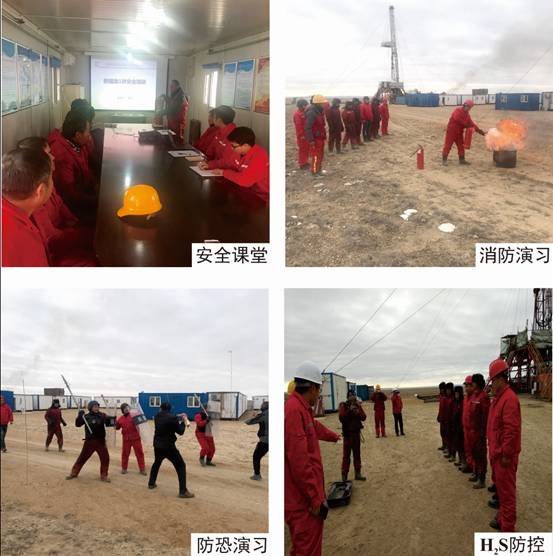 消防、防恐、井控及硫化氢应急救援等项目的室外演习均是在没有预先通知的情况下开展。井场和生活区的警报喇叭与报警灯突然响起,井场人员迅速聚集到指定安全区域,在油气中心驻井人员和井队安全负责的指挥下按应急预案处理各项突发事件。11月的阿勒泰,天寒地冻,但井场人员的演习热情丝毫不减。经过安全课堂的详细讲解与现场演习的具体示范,井场人员的安全意识得到普遍提升,风险辨识和安全操作技能得到显著提高。