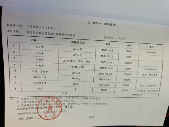 供应商名称:中国地质大学(北京)